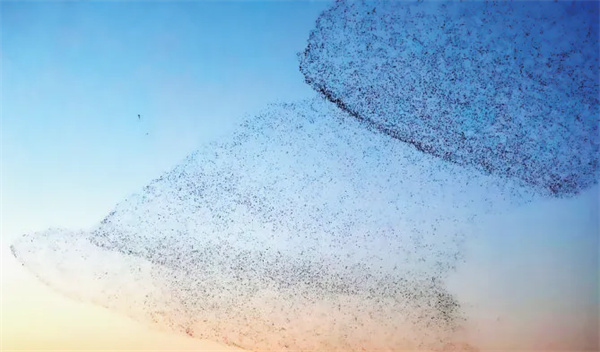 秋冬时节,万千候鸟如约飞抵黄河口。黄河口湿地上,连片芦苇褪去翠绿换作金黄,风过处翻涌成层层“芦浪”,数万只飞鸟组成的“鸟浪”在夕阳的余晖里上下翻飞,不断变换阵型,像一幅流动的画卷。